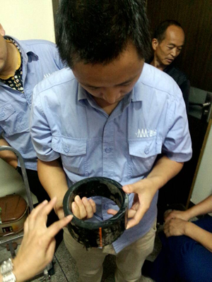 200的PE管切割完成只用了1分半鐘,效率之快令人驚訝,整個切割過程中不牽涉電,明火,不存在馬達鋸切割的靜電、漏電、火花這些安全隱患,切割面光滑平整,沒有一點毛邊,好像刀切豆腐一樣,客戶喜愛地稱呼OE管鍘刀為狗頭鍘。整個試用過程熱烈非凡,各種好奇,驚訝,疑問,贊美,討論,化成一輪輪熱烈的聲波把整個辦公室的氛圍烘托的熱烈到了頂點。