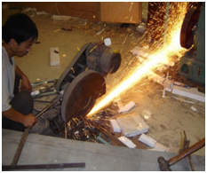 缺點:此切割方式產生火花,容易引事故,且有熔雜及氧化物。
