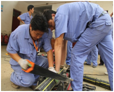 4、手工鋸管:手工鋸管時應與相應的管子軋頭凳配合使用,管子要在軋頭凳上固定穩(wěn)固后方可鋸管。切割不銹鋼管道時還應用酸醋不停的淋澆在切口上,以防止切口打滑。