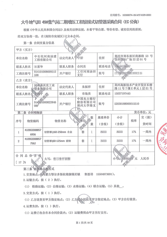 2018中石化河南油建工程有限公司合作業(yè)績(jī)
