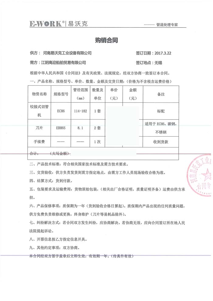2017年江陰高迎船舶貿(mào)易有限公司合作業(yè)績