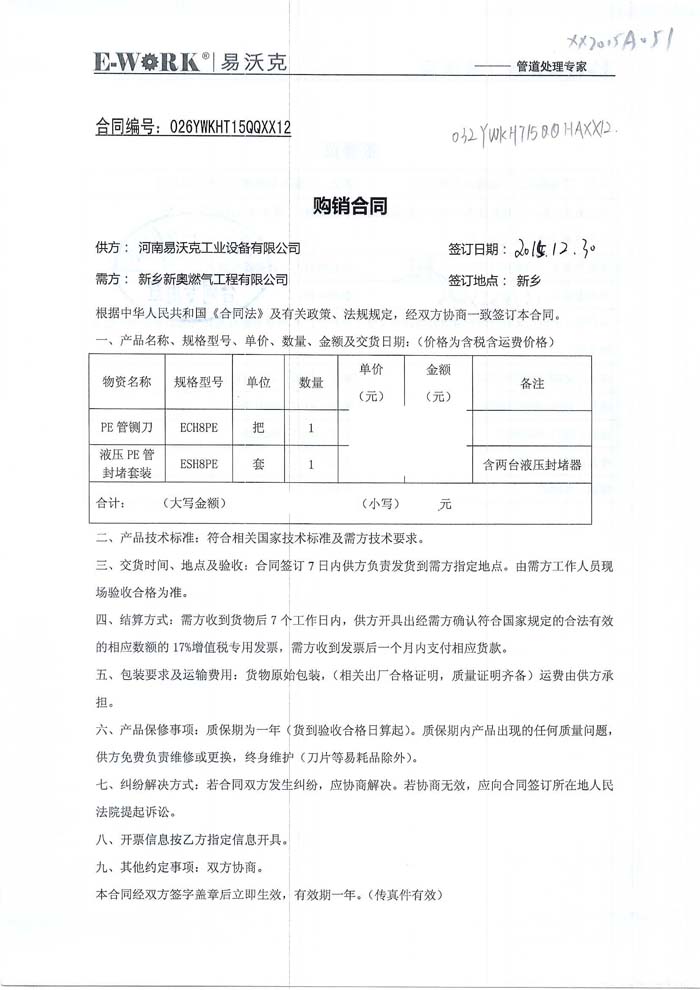 2015年河南新鄉(xiāng)新奧燃?xì)夤こ逃邢薰竞献鳂I(yè)績(jī)