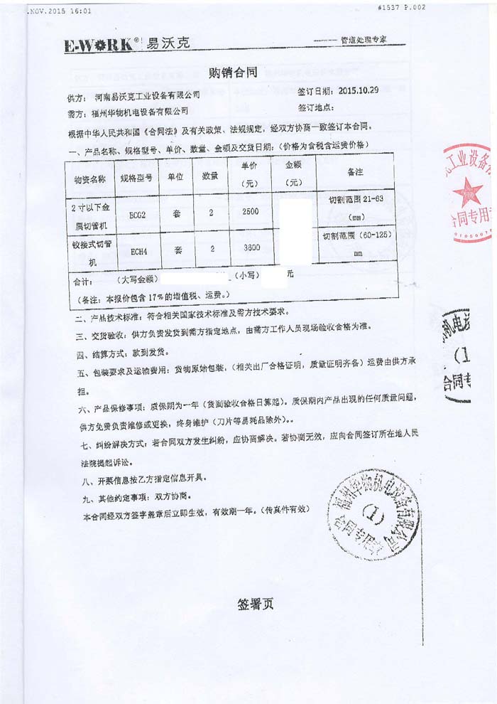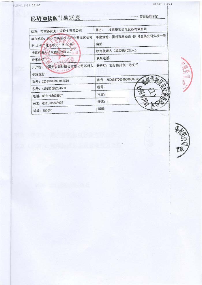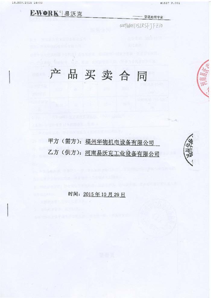2015年福建福州華物機電設(shè)備有限公司合作業(yè)績