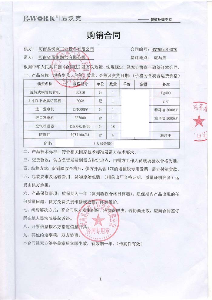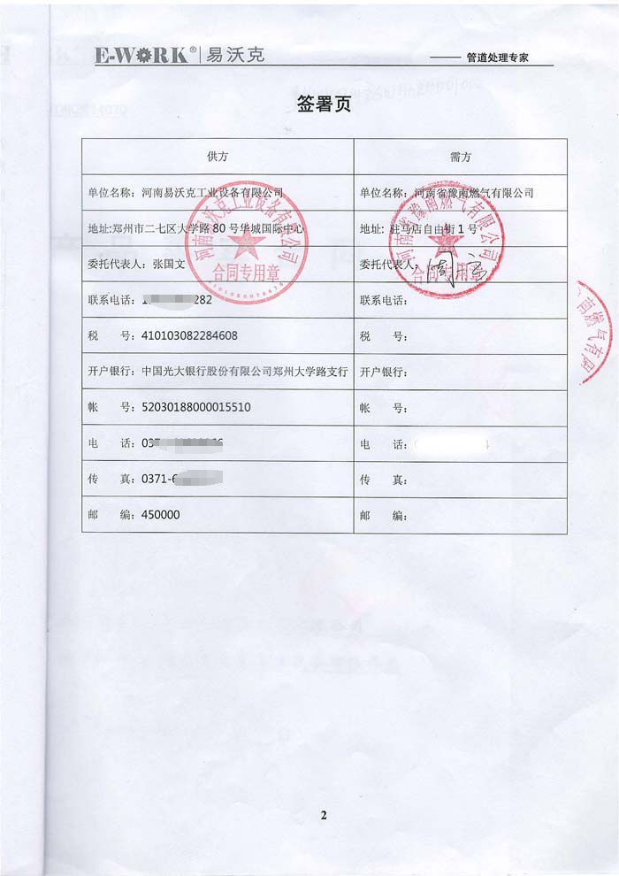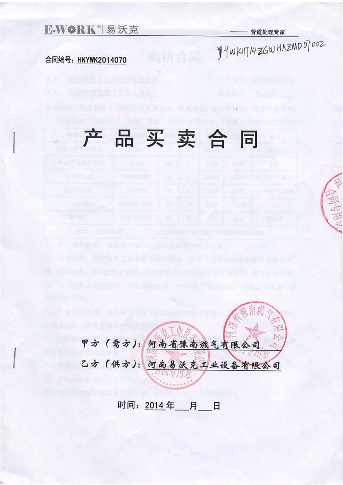 2014年河南省豫南燃氣有限公司合作業(yè)績