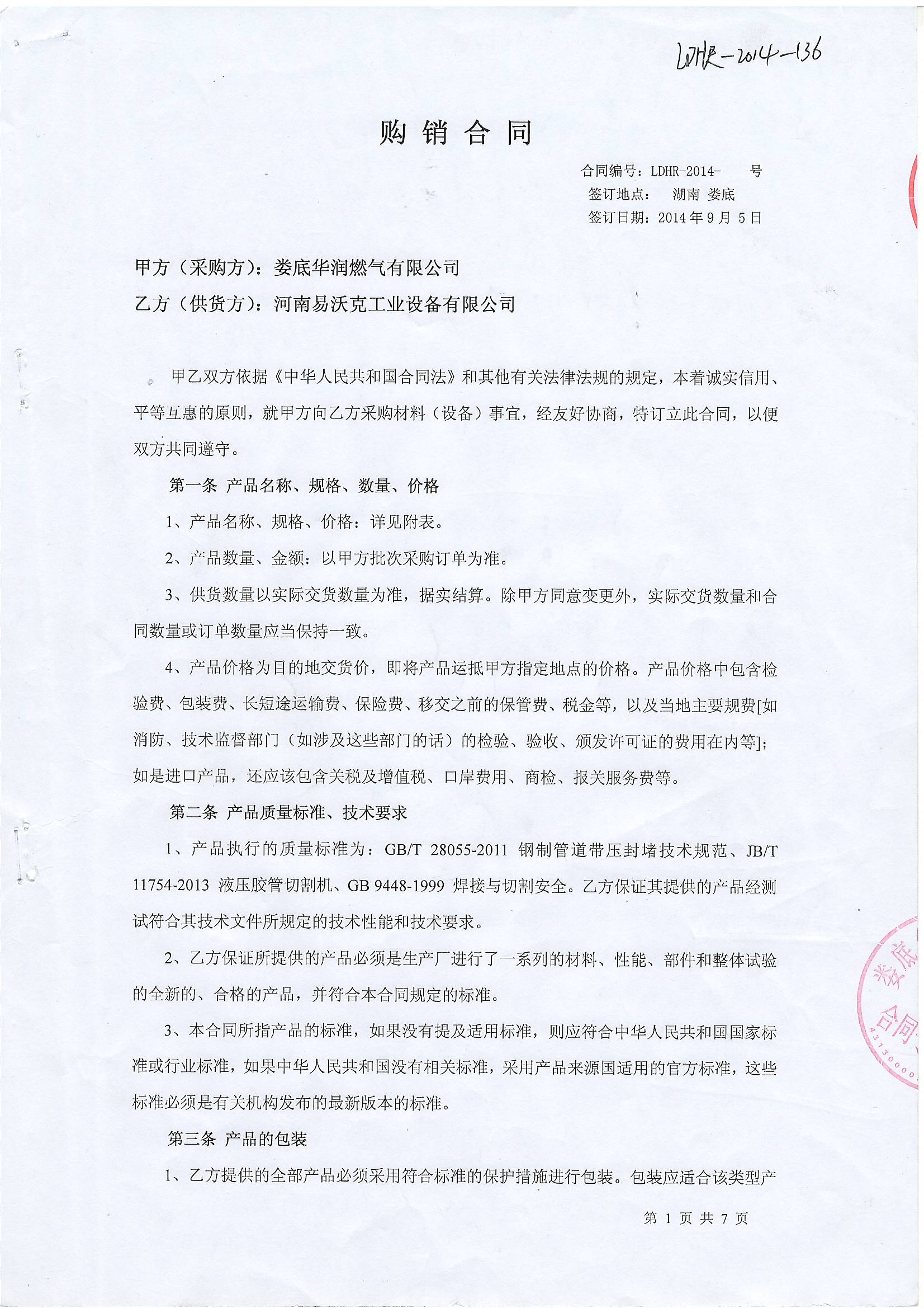 2014年湖南婁底華潤燃氣有限公司合作業(yè)績